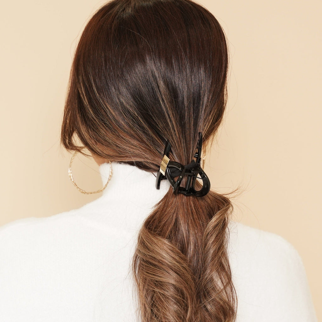 Its innovative claw design securely holds all hair types in place. Crafted from durable material with Gold detailing, the Loop Claw Clip is built to last and withstand daily wear.
